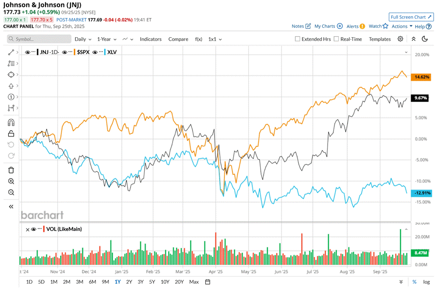 JNJ has lagged behind the S&P 500 Index's ($SPX) 15.4% uptick over the past 52 weeks, with its shares up 10.7% over the same time period. Nonetheless, it has considerably outpaced the Health Care Select Sector SPDR Fund’s (XLV) 12.1% drop over the same time frame.