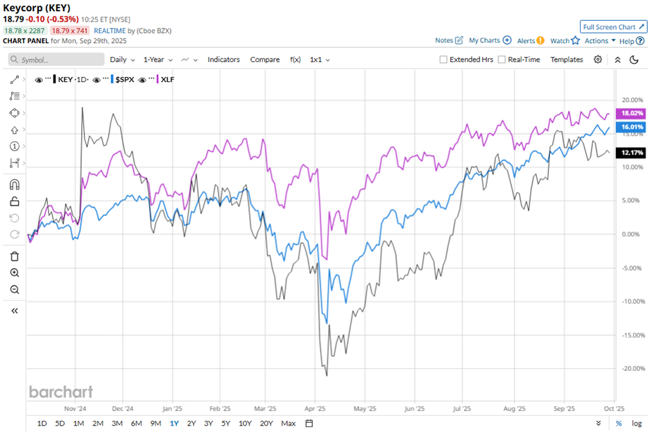 Shares of KeyCorp have increased 13.9% over the past 52 weeks, underperforming both the S&P 500 Index's ($SPX) 16.2% gain and the Financial Select Sector SPDR Fund’s (XLF) 19.3% return over the same period.