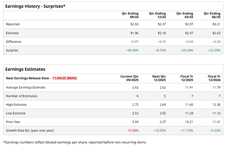 Leidos Holdings, Inc. (LDOS) is a Virginia-based technology company specializing in defense, aviation, information technology, and biomedical research. With a market cap of $23.9 billion, Leidos employs approximately 47,000 people and operates across four primary divisions: National Security & Digital, Health & Civil, Commercial & International, and Defense Systems. The global science and technology leader is expected to announce its fiscal third-quarter earnings for 2025 before the market opens on Tuesday, Nov. 4.