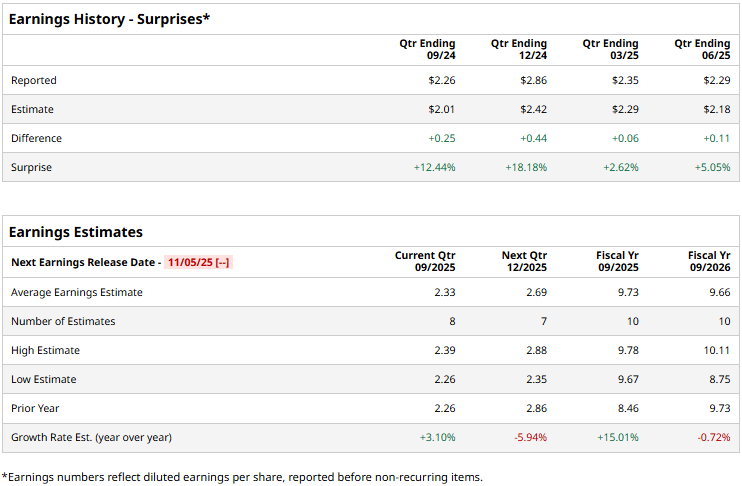 The semiconductor giant is gearing up to release its Q4 earnings after the market closes on Wednesday, Nov. 5. Ahead of the event, analysts expect QCOM to report an EPS of $2.33, up 3.1% from $2.26 reported in the year-ago quarter. Moreover, the company has surpassed the Street’s bottom-line expectations in each of the past four quarters by notable margins.