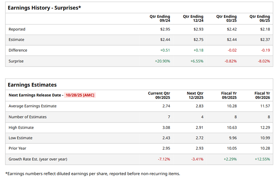 Saint Petersburg, Florida-based Raymond James Financial, Inc. (RJF) provides private client group, capital markets, asset management, banking, and other services. Valued at $32.9 billion by market cap, the company offers its services to individuals, corporations, and municipalities in the U.S., Canada, and Europe. The leading diversified financial services company is expected to announce its fiscal fourth-quarter earnings for 2025 on Wednesday, Oct. 22.