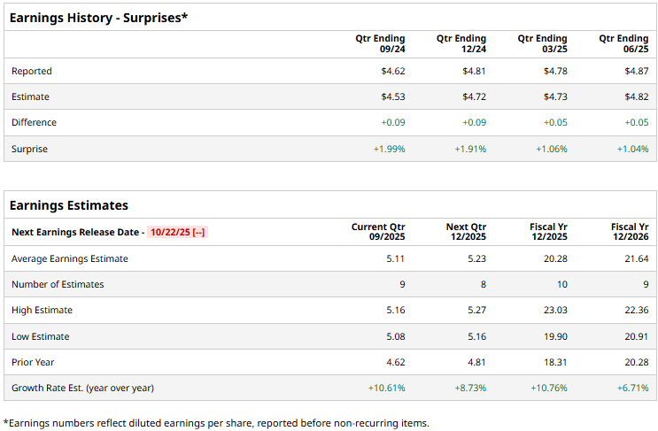 The software major is expected to announce its third-quarter results on Wednesday, Oct. 22. Ahead of the event, analysts expect Roper to deliver a non-GAAP profit of $5.11 per share, up 10.6% from $4.62 per share reported in the year-ago quarter. Further, the company has a solid earnings surprise history. It has surpassed the Street’s bottom-line estimates in each of the past four quarters.