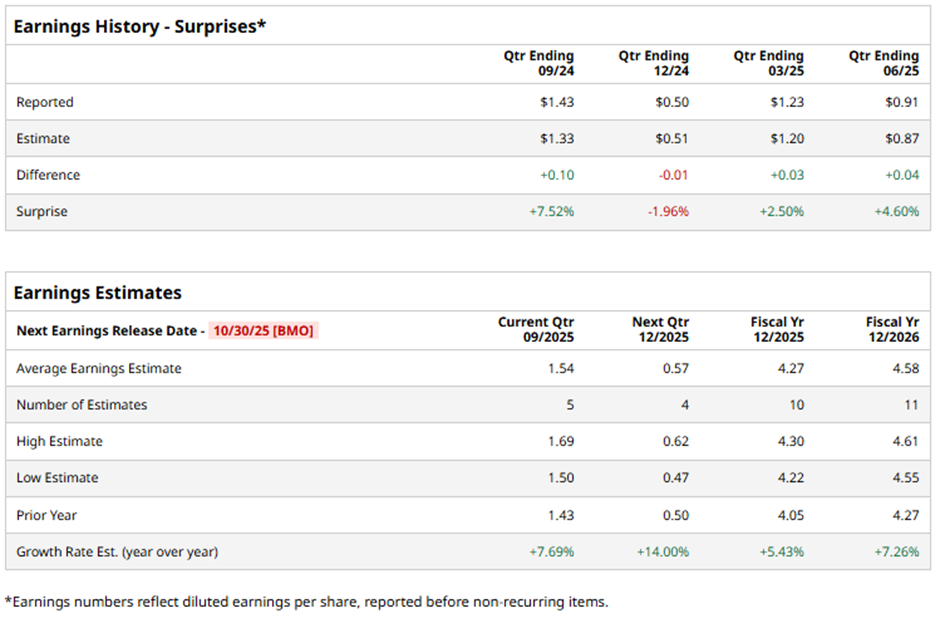 The Atlanta, Georgia-based company is expected to unveil its fiscal Q3 2025 results before the market opens on Thursday, Oct. 30. Before the event, analysts anticipate SO to report an adjusted EPS of $1.54, up 7.7% from $1.43 in the year-ago quarter. It has surpassed Wall Street's bottom-line estimates in three of the past four quarters while missing on another occasion.
