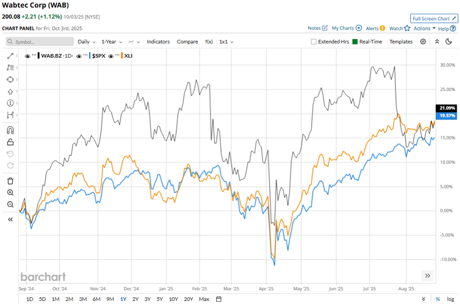 Shares of Wabtec have increased 10.9% over the past 52 weeks, underperforming both the S&P 500 Index's ($SPX) 17.8% gain and the Industrial Select Sector SPDR Fund's (XLI) 14.7% return over the same period.