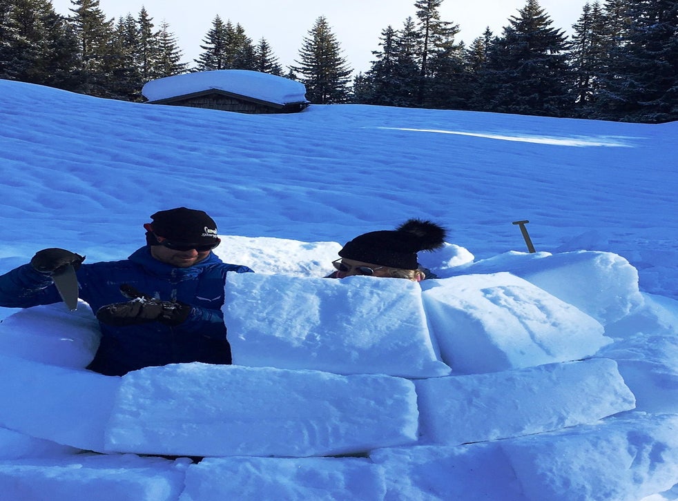 Make the most of Zugspitz’s winter wonderland by learning how to build your own igloo, left. For a romantic treat, snuggle under blankets as you take a ride through snow-covered villages in a horse-drawn carriage.