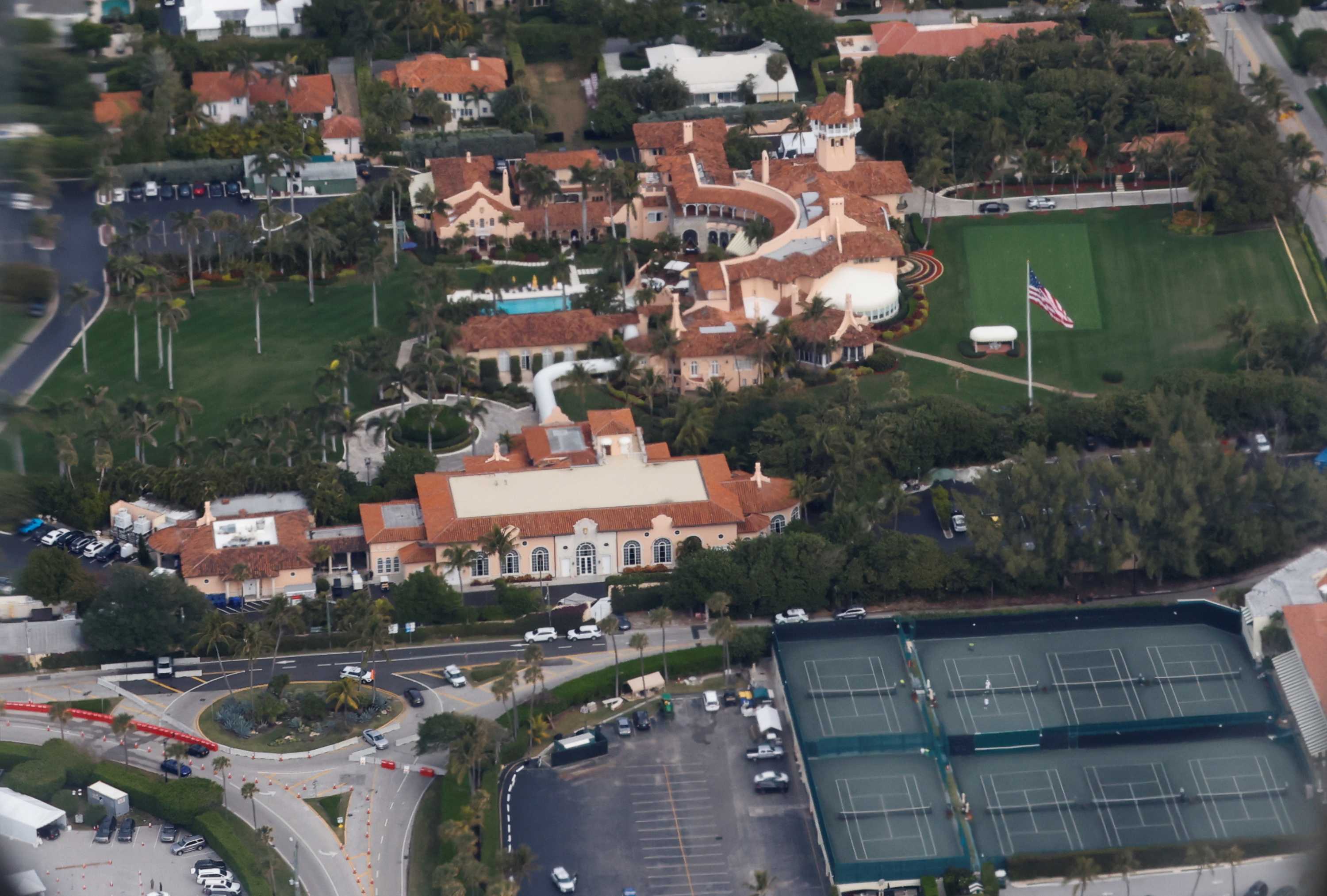 Aerial footage captured a security presence at Mar-a-Lago at the time.