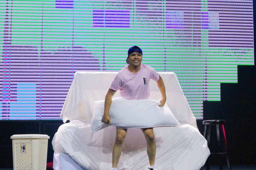 Dominic made a whole dance routine surrounding his morning ritual. A video showed his Filipino mother trying to wake him up for his performance and he woke up in a bed placed in the middle of the stage. Every step he made is a carefully choreographed move, from waking up, changing clothes, and even using the tabo.