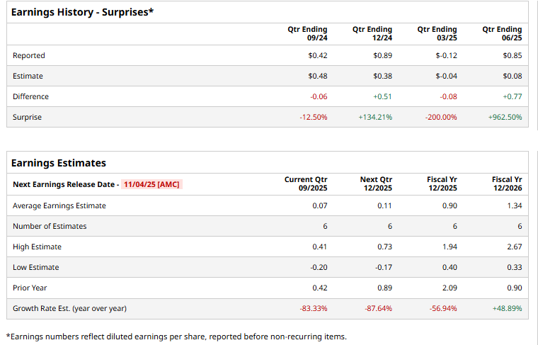 For fiscal 2025, analysts forecast the company to report EPS of $0.90, down 56.9% from $2.09 in fiscal 2024. However, EPS is expected to rebound, growing 48.9% year over year to $1.34 in fiscal 2026.