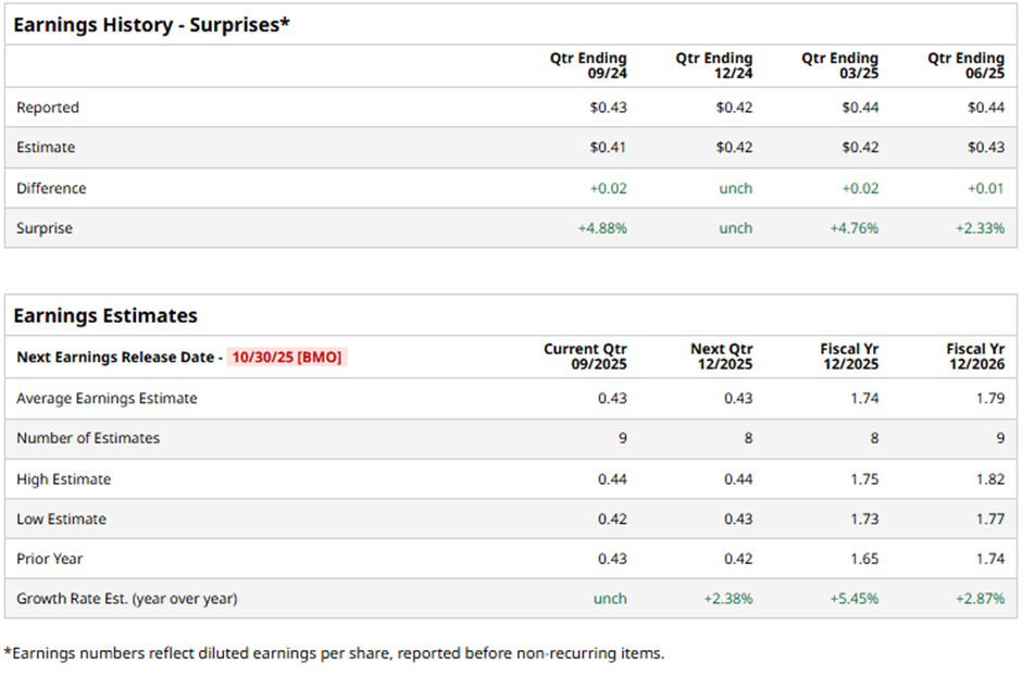 The Jericho, New York-based company is set to release its fiscal Q3 2025 results before the market opens on Thursday, Oct. 30. Ahead of this event, analysts project Kimco Realty to report an FFO of $0.43 per share, in line with the year-ago quarter. It has exceeded or met Wall Street's earnings expectations in the past four quarters.