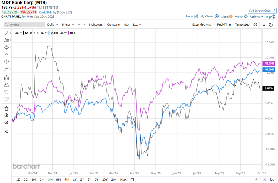 Shares of M&T Bank have risen 12.7% over the past 52 weeks, lagging behind both the S&P 500 Index's ($SPX) 16.3% gain and the Financial Select Sector SPDR Fund's (XLF) 19.3% return over the period.