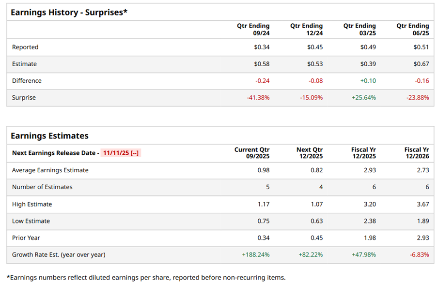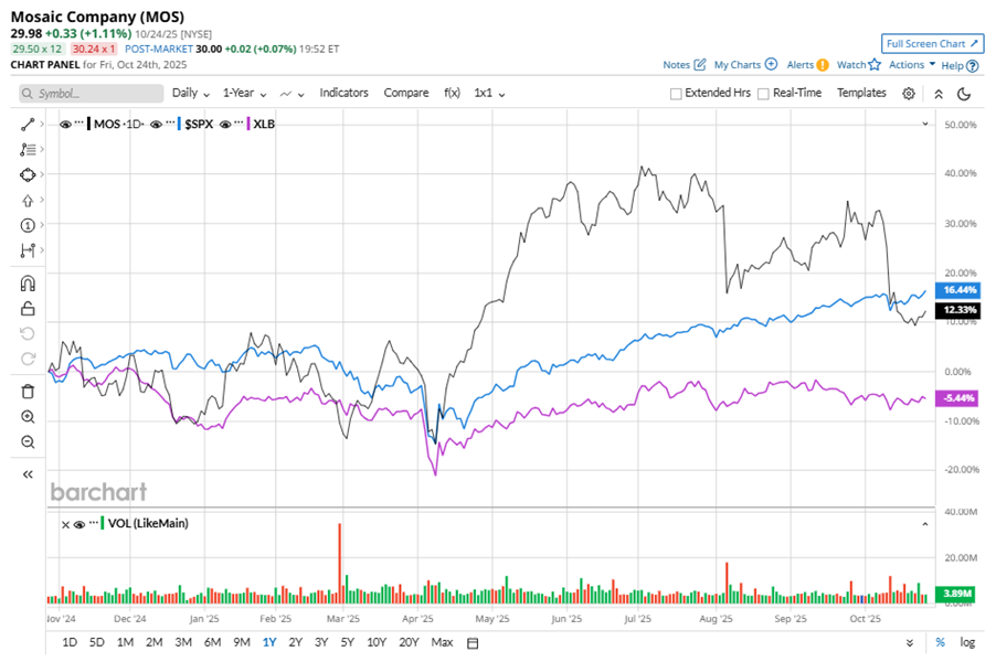 The Mosaic Company (MOS), headquartered in Tampa, Florida, manufactures and distributes concentrated phosphate and potash crop nutrients. Valued at $9.5 billion by market cap, the company owns and operates mines that produce key agricultural products like diammonium phosphate, monoammonium phosphate, and ammoniated phosphate, as well as manufactures phosphate-based animal feed additives under the Biofos and Nexfos brands. The leading producer of concentrated phosphate and potash is expected to announce its fiscal third-quarter earnings for 2025 in the near future.