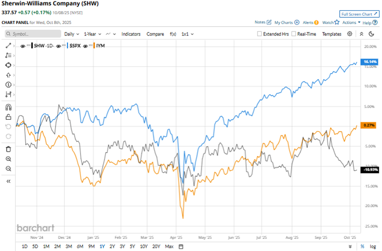 Sherwin-Williams’ stock has been underperforming the broader market over the past year. Over the past 52 weeks, the stock has lost 9.6%, while it is down marginally year-to-date (YTD). On the other hand, the broader S&P 500 Index ($SPX) has gained 17.4% and 14.8% over the same periods, respectively.