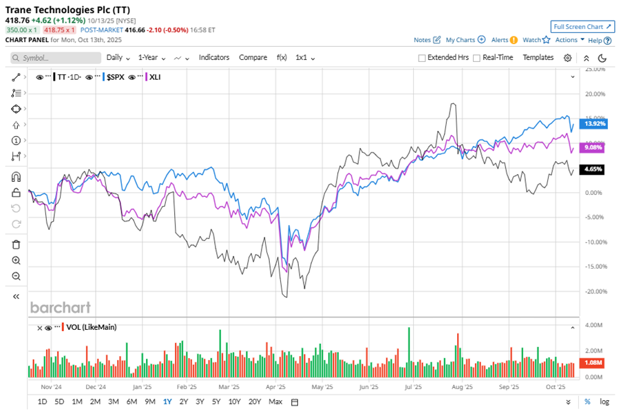 TT stock has underperformed the S&P 500 Index’s ($SPX) 14.4% gains over the past 52 weeks, with shares up 4.7% during this period. Similarly, it underperformed the Industrial Select Sector SPDR Fund’s (XLI) 9.4% gains over the same time frame.