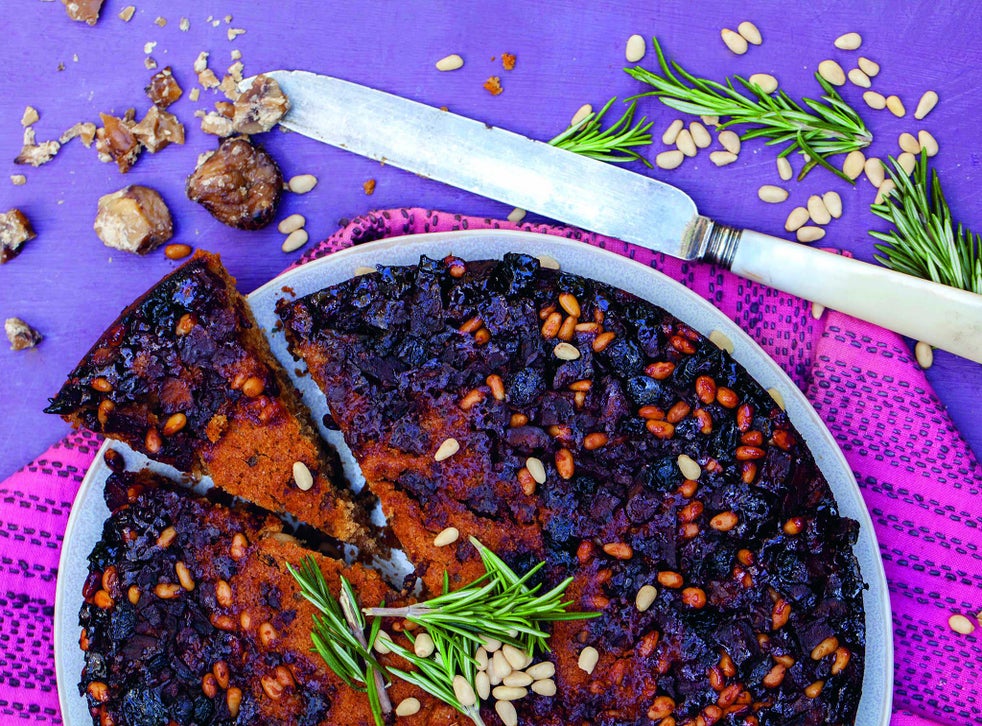 Upside-down chestnut and pine nut pie