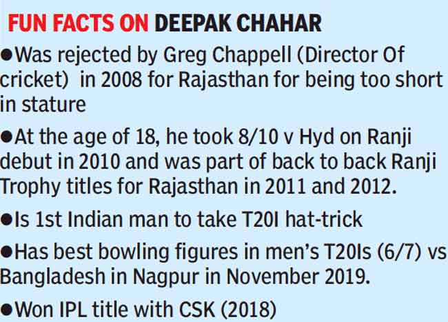 Deepak has backed himself as an allrounder for nearly four years now. He had even listed himself as an allrounder for the IPL auctions in 2018. It was the year he was lapped up for Rs 80 lakh by Chennai Super Kings (CSK), a franchise that has provided wings to his career. It was the same auction when his younger cousin Rahul was bought for Rs 1.9 crores by Mumbai Indians.