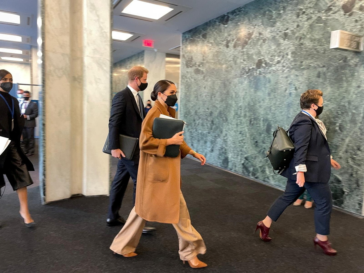 Prince Harry and Meghan Markle visited the United Nations in New York on Saturday to meet with U.N. Deputy Secretary-General Amina Mohammed during the 193-member world body's annual gathering of leaders.