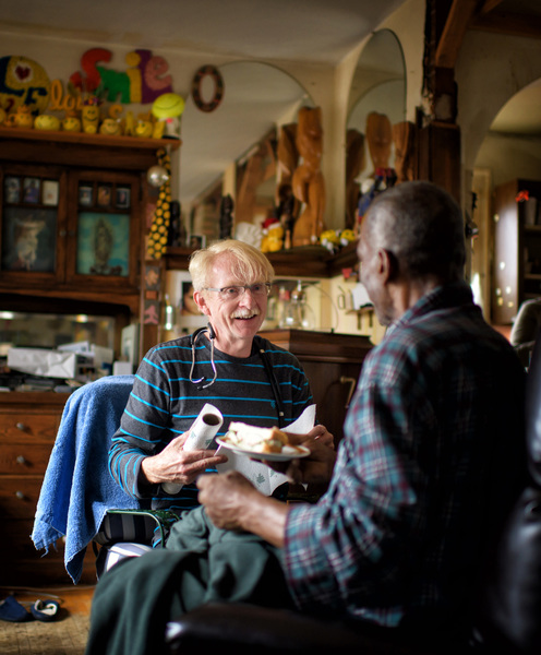 With the cancer progressing fast, he's receiving hospice care at home. His friends and family visit him often, filling up the living room.