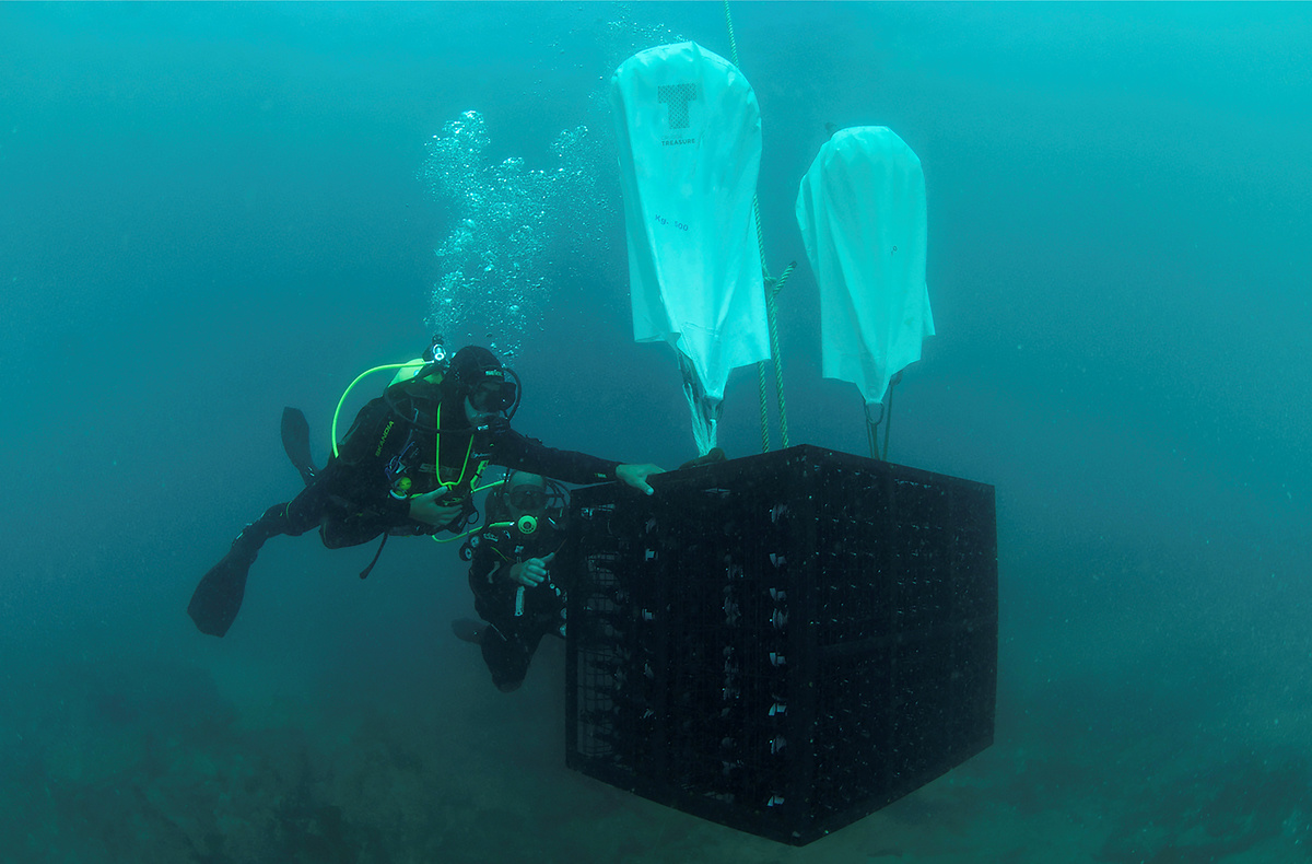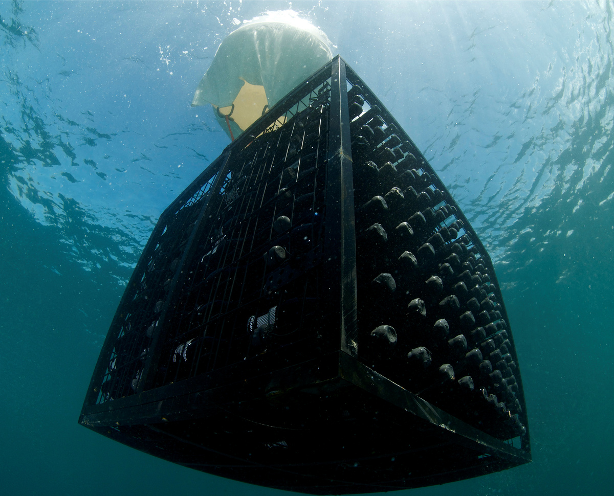 The government granted the firm 500 square meters of sea bed to age thousands of bottles in cages within concrete structures that also act as an artificial reef to help sustain marine wildlife.