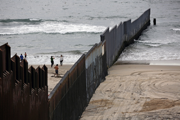 It is also the site of often-emotional encounters during which stranded deportees on the south visit with separated loved ones on the north, albeit through a mesh-steel fence. A minister of the "church of the lighthouse" says an interfaith prayer on behalf of divided families. The barrier has become a kind of politically charged art installation, featuring evolving images and slogans, most condemning President Donald Trump's immigration policies.