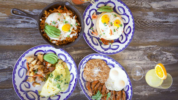 The Mexican casual dining chain has rolled out an Easter brunch menu featuring Steak a la Diabla and eggs, Chilaquiles (corn tortillas fried and sautéed with salsa and topped with cheese, crema and onion), various omelettes including one with shrimp and crab, or churro pancakes; dessert featuring cinnamon-crisp cheesecake, deep-fried ice cream and flan; and bottomless mimosas and bloody marys, all for $34.