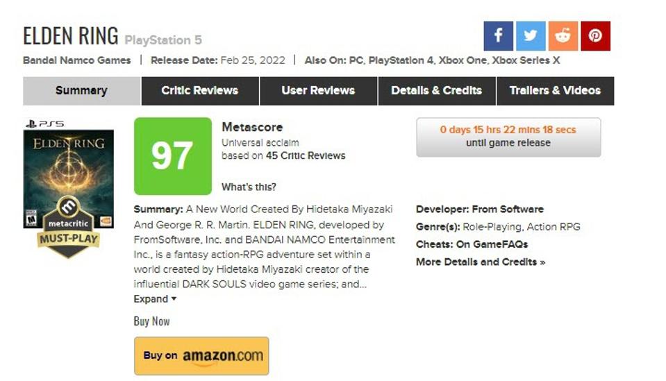 Here are the top 20 games in Metacritic history, along with where Elden Ring falls: