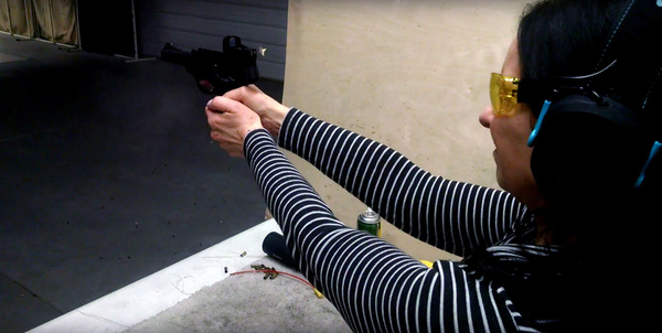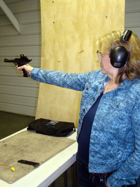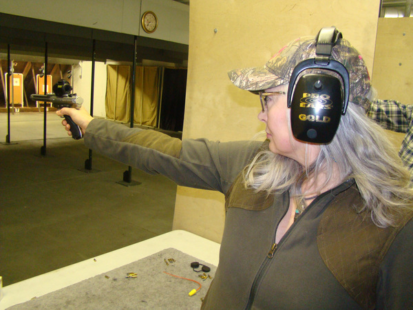 "He's several points ahead of me," Sherry said of her husband's pistol prowess.