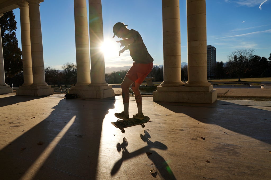 Derek Greenough moved to Denver a few months ago and immediately bought a snowboard with the hope of soon hitting the slopes. But on Wednesday, he was enjoying the warm weather in a city park.