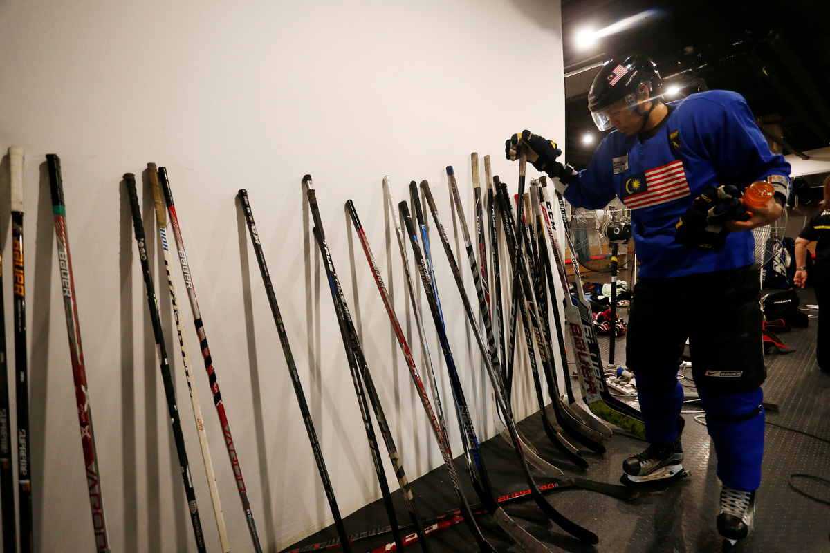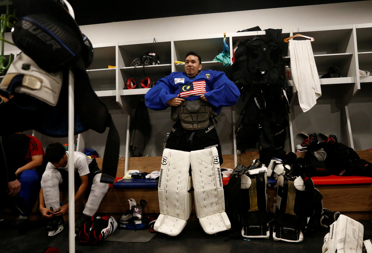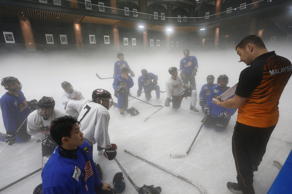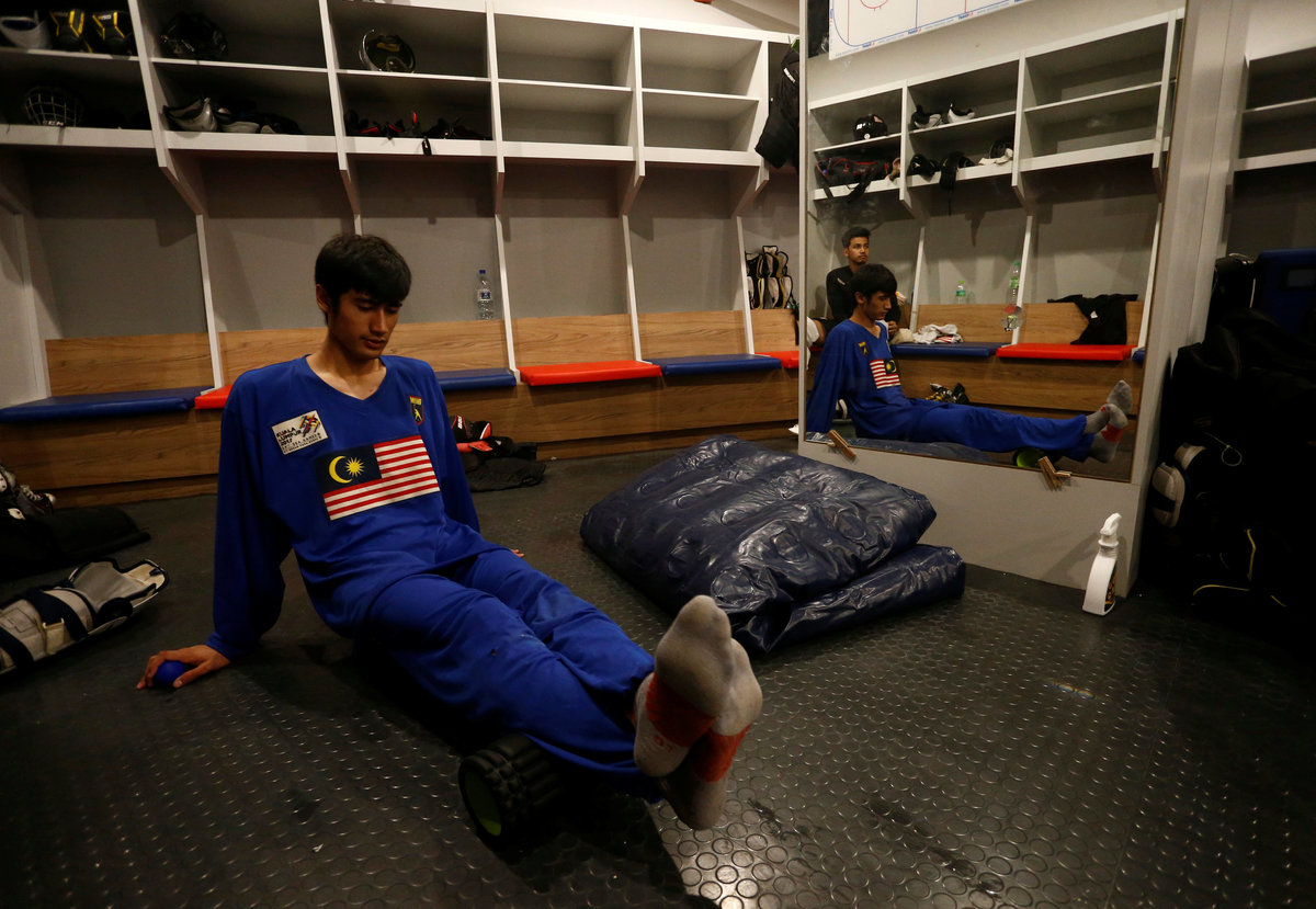 KUALA LUMPUR (Reuters) - In the middle of a sprawling construction site in equatorial Malaysia, over a dozen young men sporting ice skates and protective gear hit the skating rink to do their morning drills.
