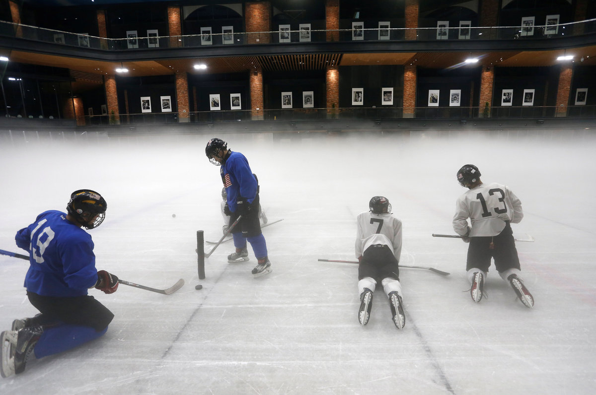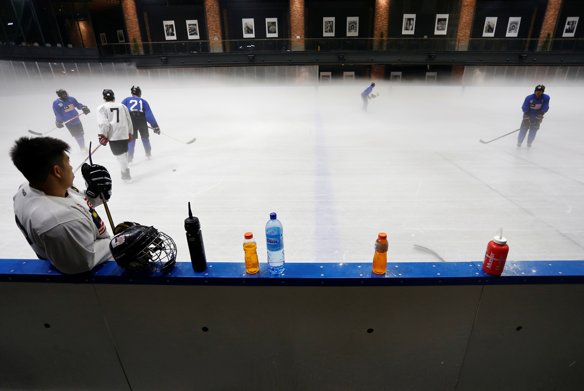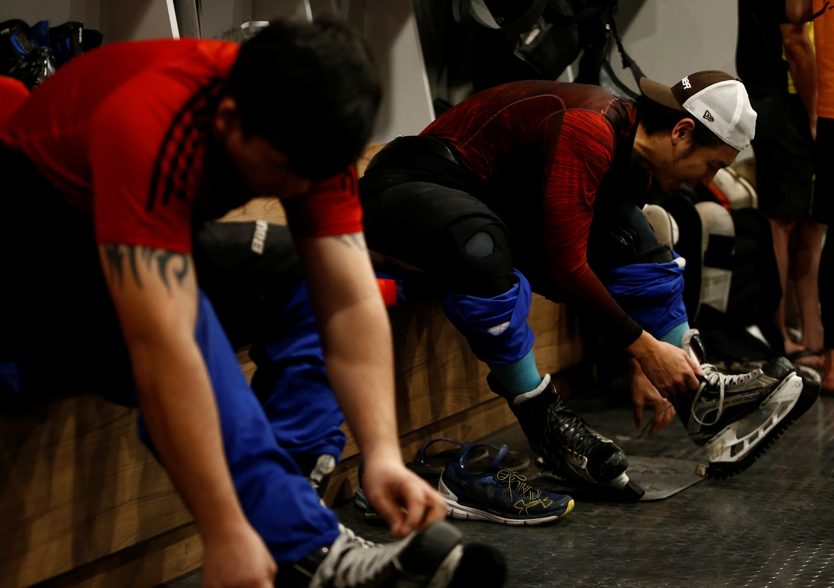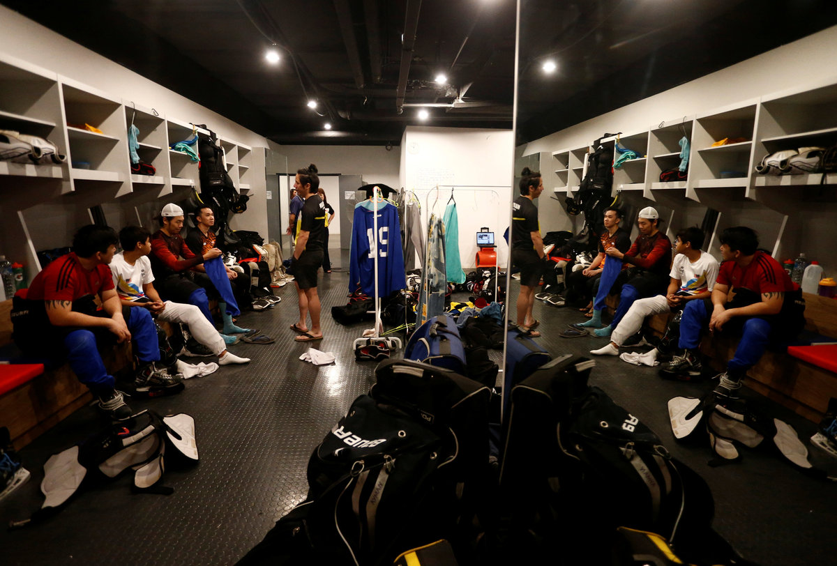KUALA LUMPUR (Reuters) - In the middle of a sprawling construction site in equatorial Malaysia, over a dozen young men sporting ice skates and protective gear hit the skating rink to do their morning drills.