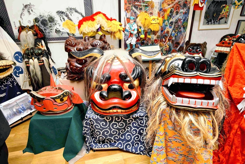 This museum related to shishimai lion dancing looks just like an ordinary house from the outside. The moment I entered the building, however, I stopped in my tracks. It was like a pack of lions staring at me with round eyes, their big mouths open.