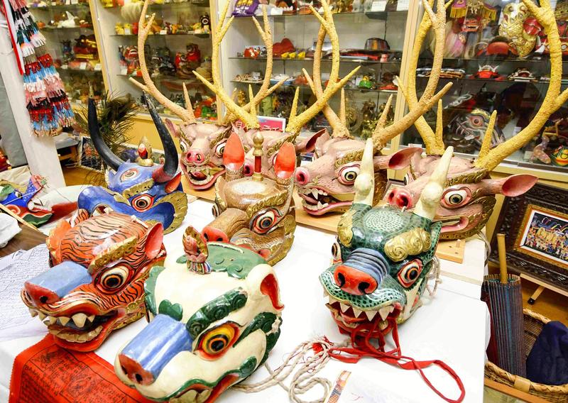 In the museum, you can also see various foreign shishi that Takahashi has collected. Colorful lion heads, all of which have different faces, are from the Himalayan kingdom of Bhutan. It was given to him by a group that came to Japan in 2007.