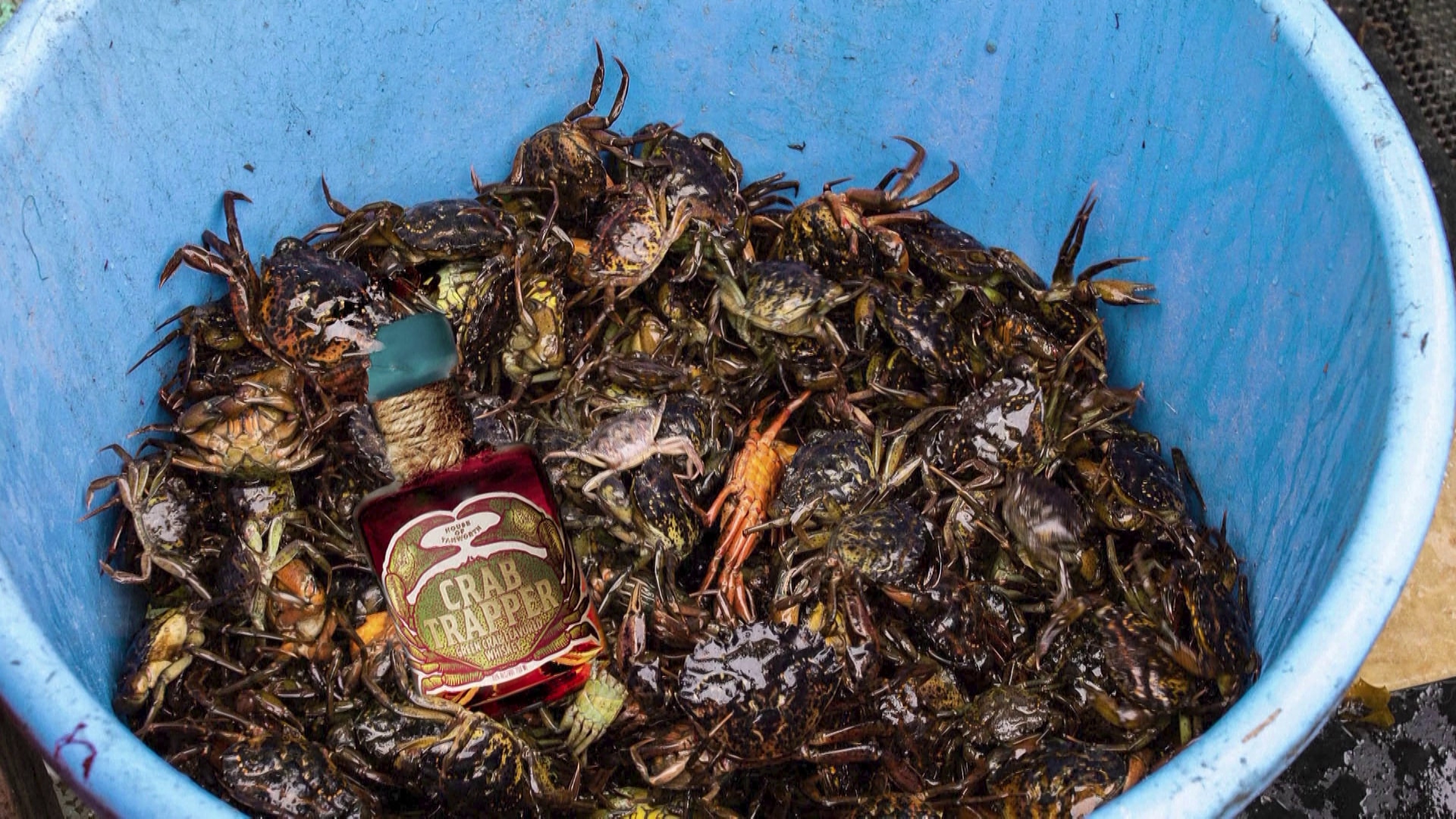 The House of Tamworth Crab Trapper Green Crab Flavored Whiskey is made with a 4-year-old bourbon base and more than 90 pounds (40.8 kilograms) of green crabs. The blended whiskey is steeped with spices.