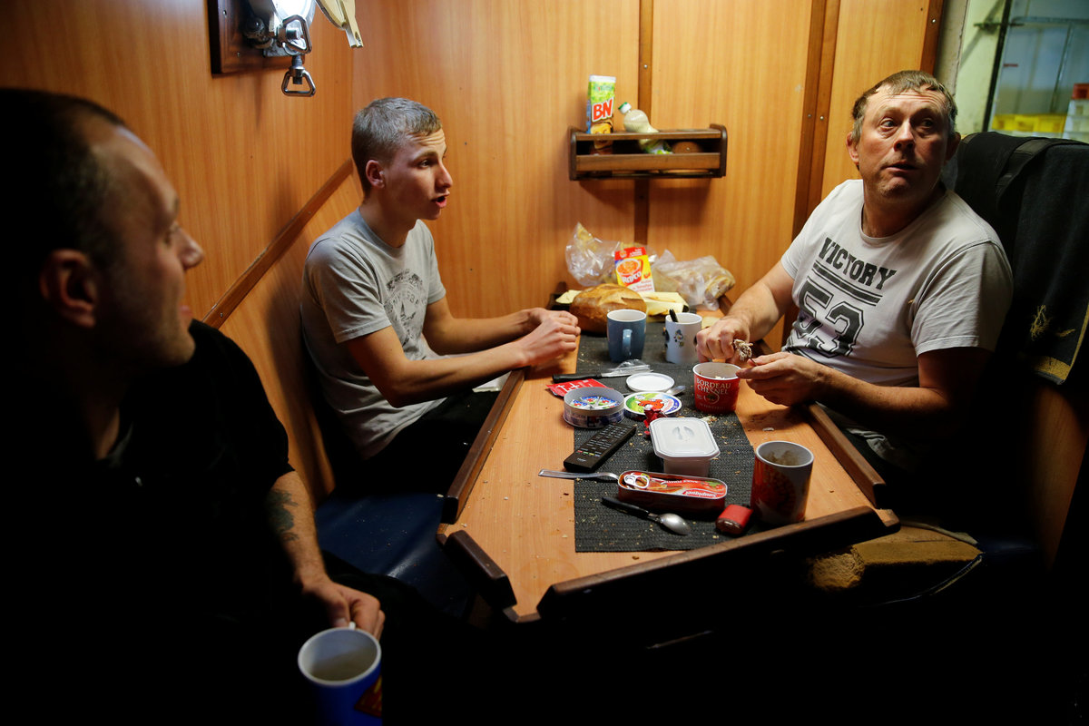 After two and a half hours on turbulent waters, they arrived at the fishing grounds but had to wait until noon and the start of the scallop season at Bay of the Seine. Police helicopters hovered to make sure no nets were lowered early.