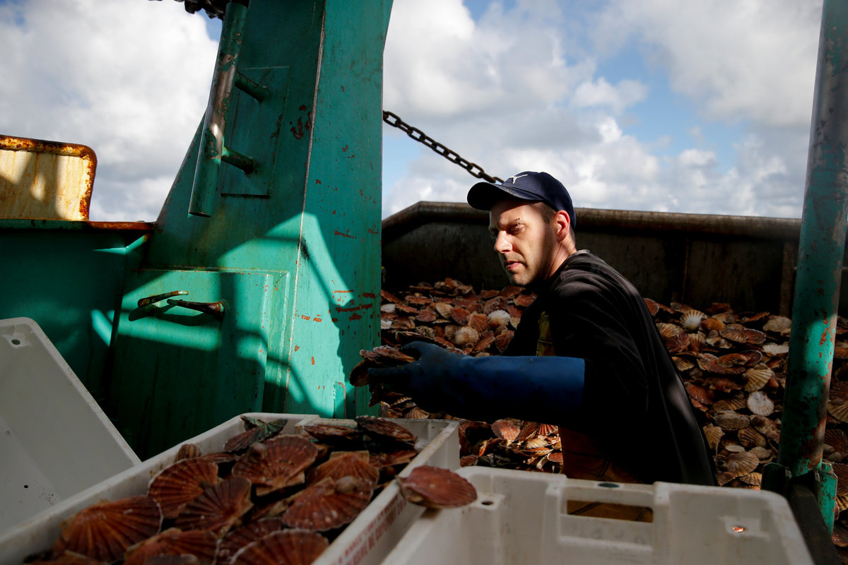 OFF THE COAST OF NORMANDY, France (Reuters) - On the trawler Thierisa the mood was festive. It was the first day of the scallop season and the deck already groaned with the "white gold" of a bumper season in the waters off northern France.