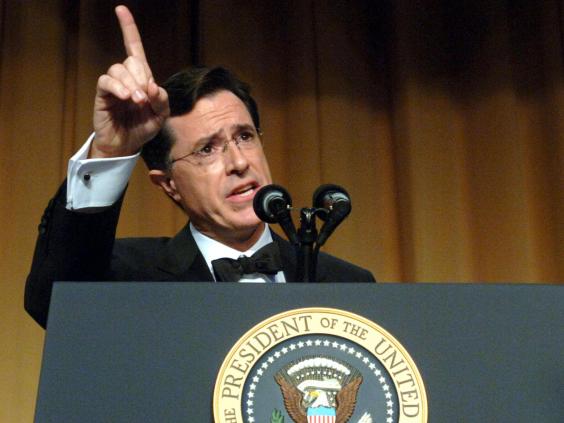 Tackling the president’s 32 per cent approval rating in the wake of the Iraq War, Mr Colbert said: “We know that polls are just a collection of statistics that reflect what people are thinking in ‘reality’. And reality has a well-known liberal bias.