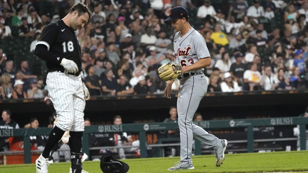 After being dead quiet for eight innings, the Sox had a shot in the ninth against closer Gregory Soto when Luis Robert doubled past diving first baseman Spencer Torkelson, driving in the Sox’ first run and putting the tying and go-ahead runs on second and third.