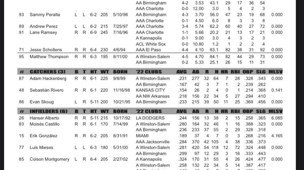 Among the 26 non-roster players invited to camp are the organization’s top shortstop prospect Colson Montgomery, Cuban outfield prospects Oscar Colas and Yoelqui Cespedes and right-hander Sean Burke. Colas will be given an opportunity to win the starting job in right field.