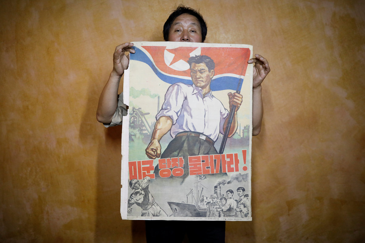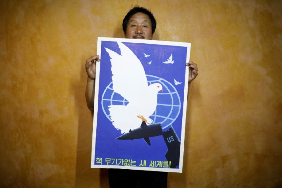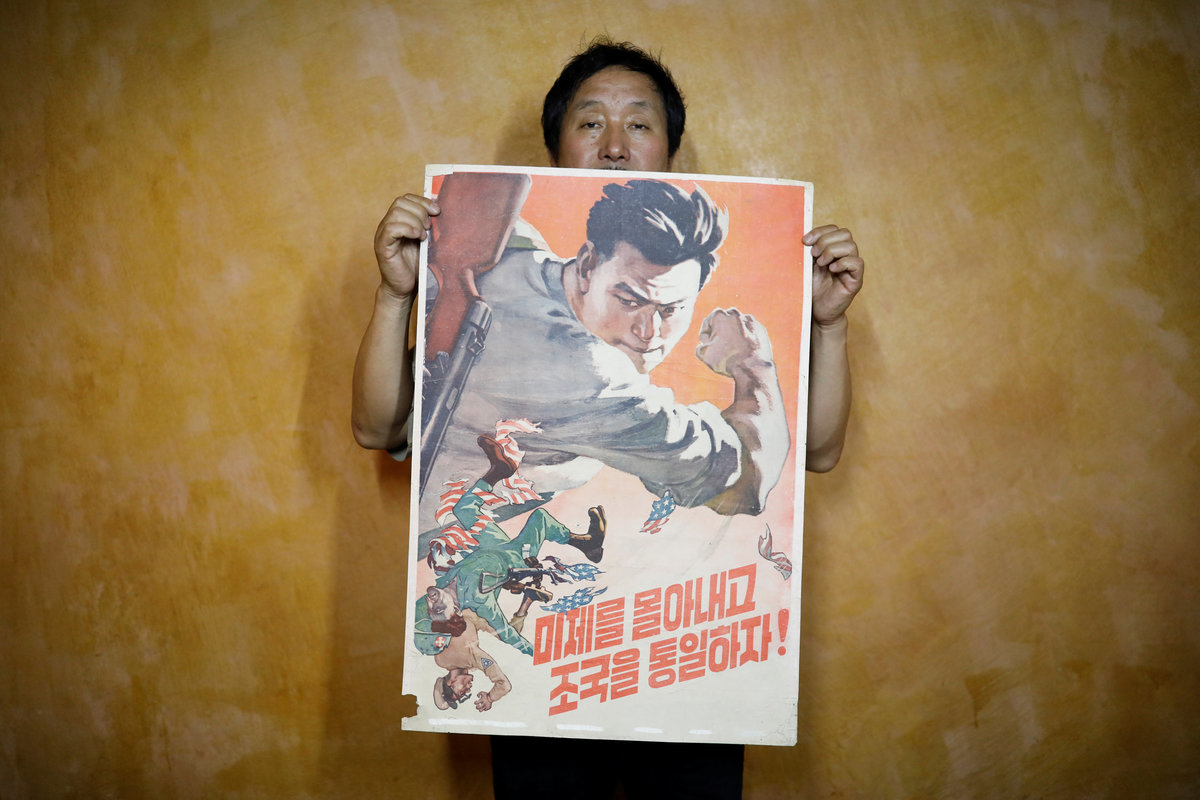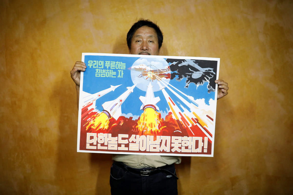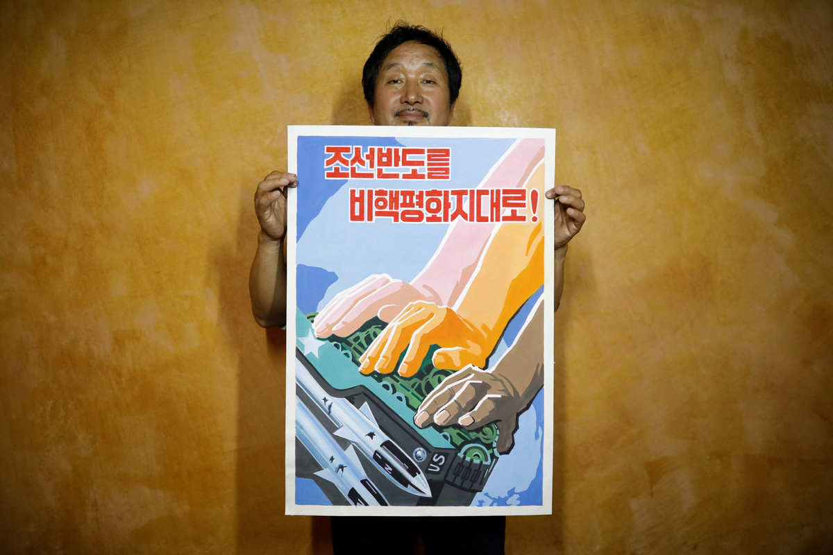 Other prominent studio names include Paekho and the Central Arts Studio. Paekho, which means "white tiger" in Korean, is the biggest seller of popular paintings in Dandong, traders there said. Collectors who have dealt with Paekho say it is run by North Korea's military - Reuters could not independently establish this. Paekho's varied output includes propaganda posters calling for a nuclear-free world.