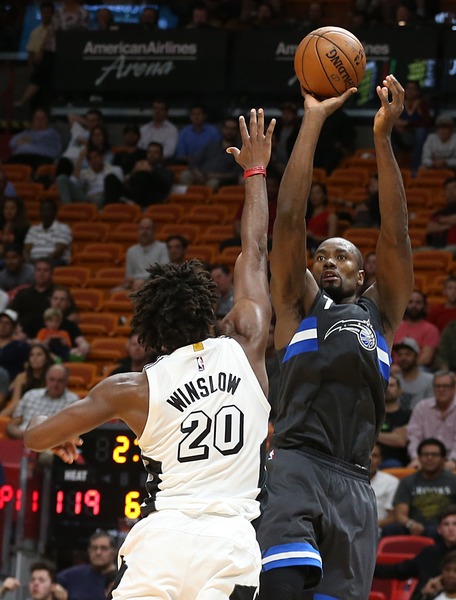 Winslow then drew an offensive foul on Magic forward Serge Ibaka, with Whiteside scoring on a feathery hook with deep post position with 2:07 to play in the first overtime for a 115-113 Heat lead. A driving finger roll from Johnson followed for a 117-113 Heat lead, with Whiteside's fifth block following on the other end.