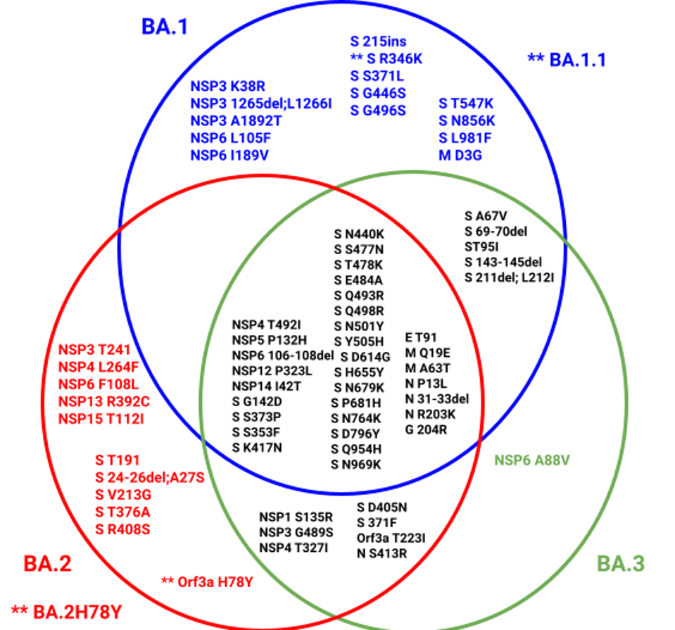 How did it happen that three all Omicron variants emerged in the same place at the same time? All are as different from one another as the three previous pandemic viruses Alpha, Beta, and Gamma. Will such triple threats be a common feature of future variants?