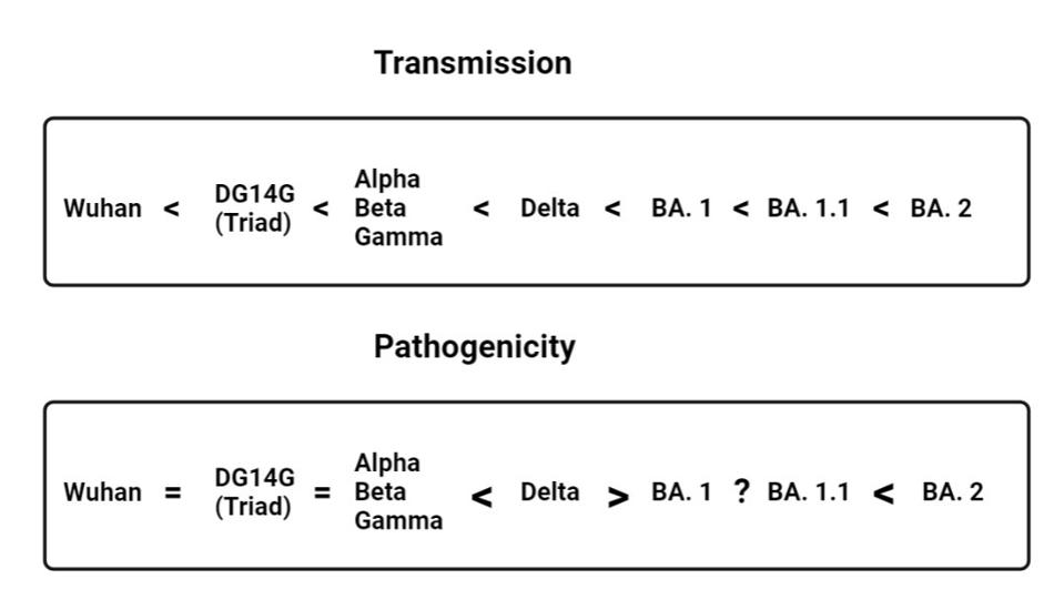 The reproduction of Delta in human populations is greater than that of the B.1.1. The reproduction rate of Delta is greater than that of Alpha, Beta, and Gamma. The reproduction rate of BA.1 is greater still.