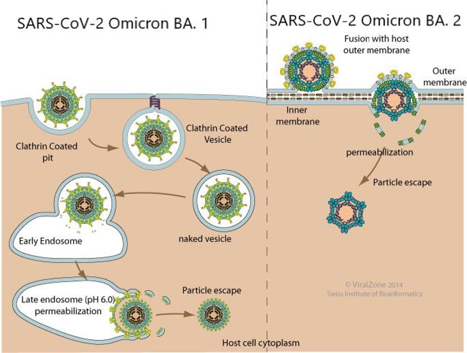 Omicron BA.1 and BA.2 differ in their mode of entry, syncytia formation, and dependence on TMPRSS2 protease. BA.1 enters via endocytosis. BA.2 enters by fusion [Table 1 & Figure 4]. BA.1 forms tiny syncytia, if any. BA.2 forms syncytia.