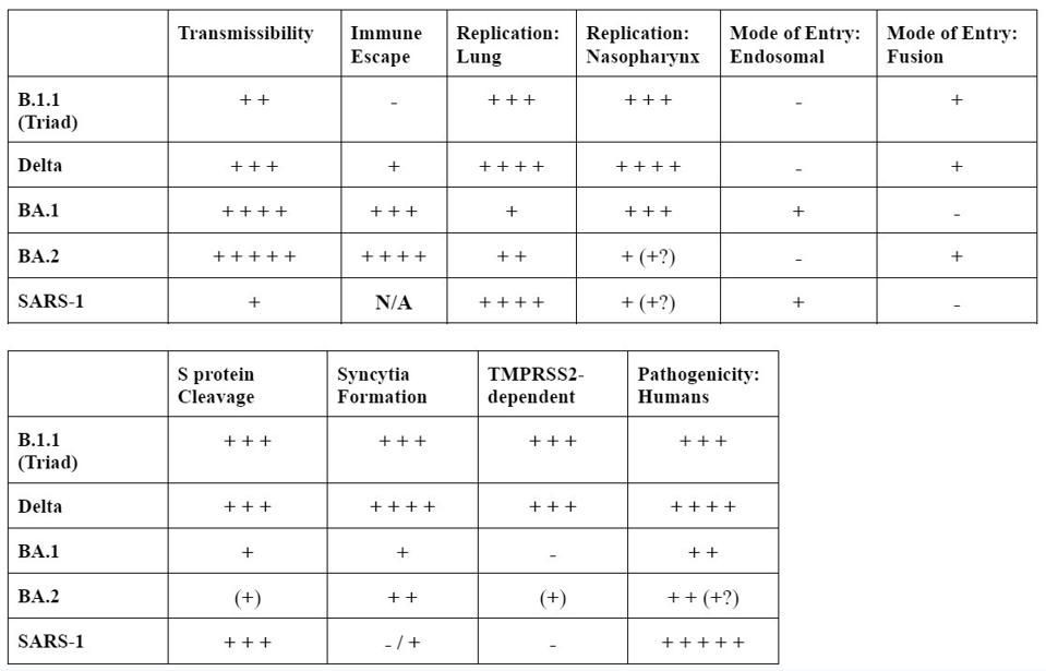 Yamasoba et al. offer no insights on the origins, questions 1 and 2, but do provide new insights regarding immune evasion, virology, and virulence. Their approach is to compare five variants: the B.1.1 early variant, Delta, as well as Omicron BA.1 and BA.2 in respects that matter for transmission, immune evasion, and disease. Recall BA.1 differs from BA.2 by more nucleotide changes and amino acid changes than distinguish all previous variants from one another [Figures 1 & 2].
