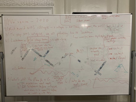 Dominic Cummings tweeted an image of a whiteboard on which the government’s supposed “plan B” for the first wave of coronavirus was sketched out, ahead of his evidence session to a joint select committee of MPs.