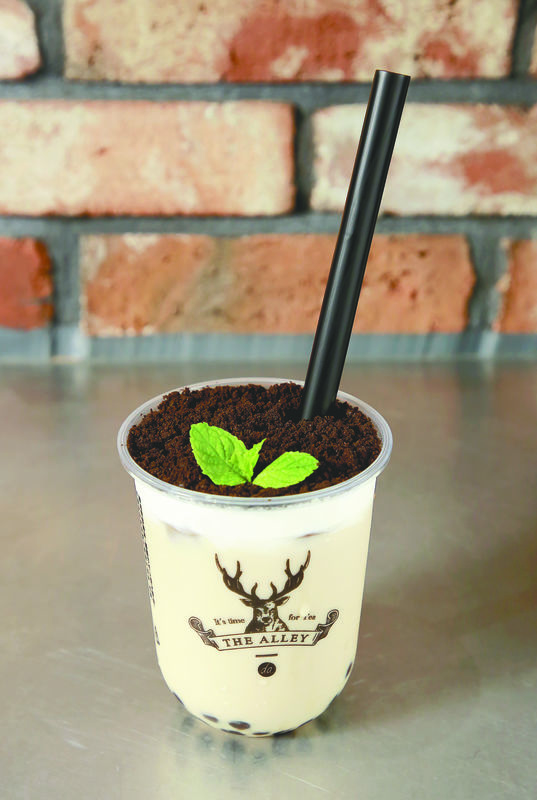 This, however, was actually a cup of milk tea with mint leaves placed on a surface layer of cocoa chips. Called "Bonsai" Garden Tapioca Milk Tea, this item at The Alley, a Taiwan-based chain with outlets across Japan, sells for 600 yen for 500 milliliters or 700 yen for 700 milliliters. It was first developed in Taiwan, according to the chain.