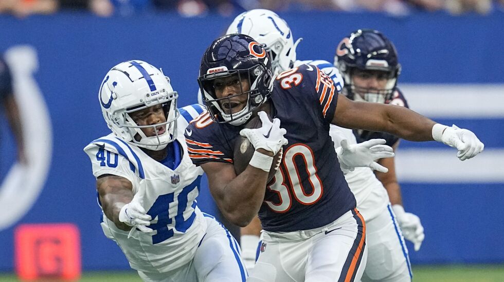 Running back: Khalil Herbert, D’Onta Foreman, Roschon Johnson, Travis Homer, FB Khari Blasingame