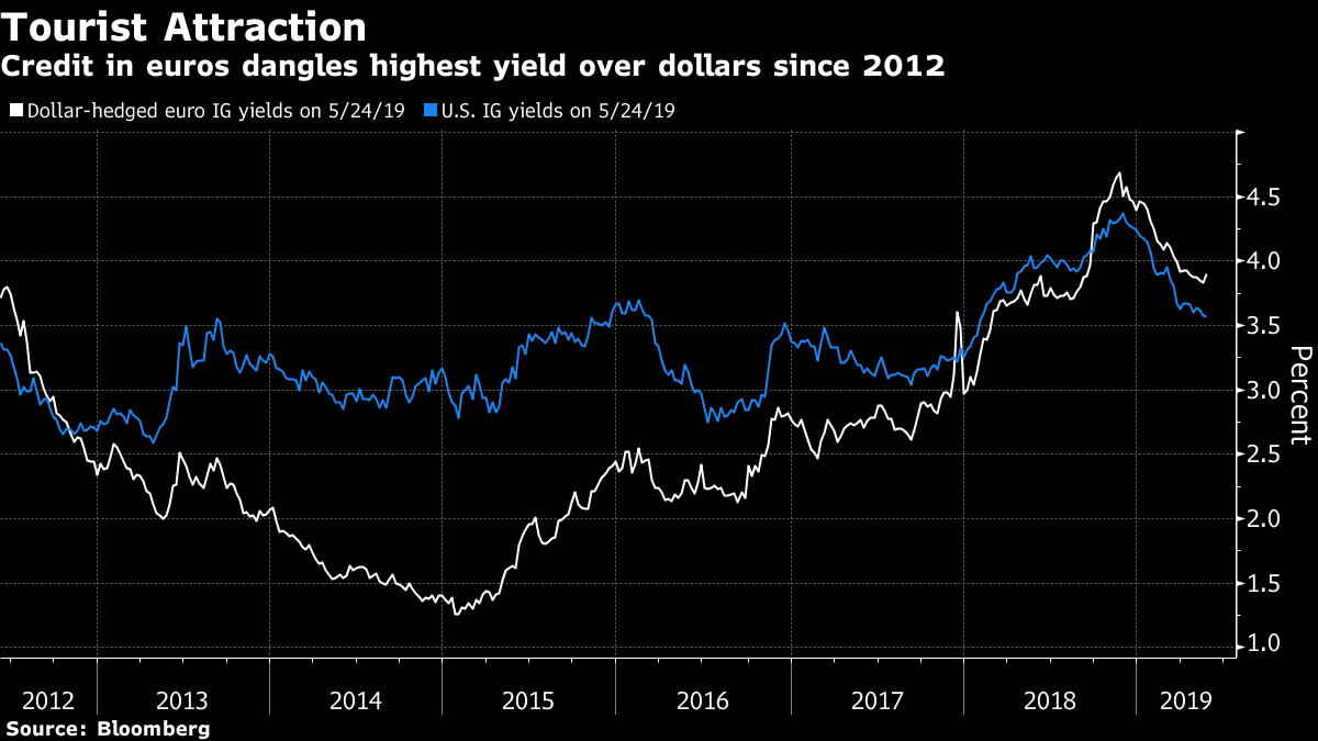 European credit markets need new friends. Since 2015, they’ve suffered dwindling purchases from abroad and seen mixed demand at home in the past year. Right now, the most favorable hedging costs in seven years bolsters their case.