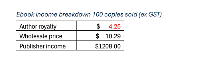 In some genres, ebooks dominate. But for the books independent publishers release, the income is usually modest – unless the title wins the Miles Franklin Literary Award, in which case they may sell a few thousand ebooks, or is set on school curricula, which means sales in the hundreds or low thousands each year.
