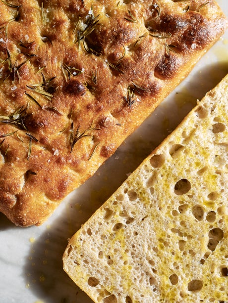 Scattered with sea salt, rosemary and a drizzle of olive oil, this focaccia integrale (which means wholemeal) is a sourdough version of the Italian classic.