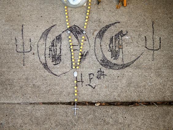 Tray is standing on the street outside a drug house in Englewood. It operates with the permission of the local Gangster Disciple “big homie,” and the Gangster Disciples here call their territory “No Love City,” which is tagged in the stairwell of the Airbnb across the street. A steady stream of customers park their cars on the corner and walk up to the raised porch to hand money up to a slow-moving fat man. The fat man hands the money through a slitted window, receives contraband in return, then ambles back to lean over the porch railing and pass the drugs down to buyers in the alley.